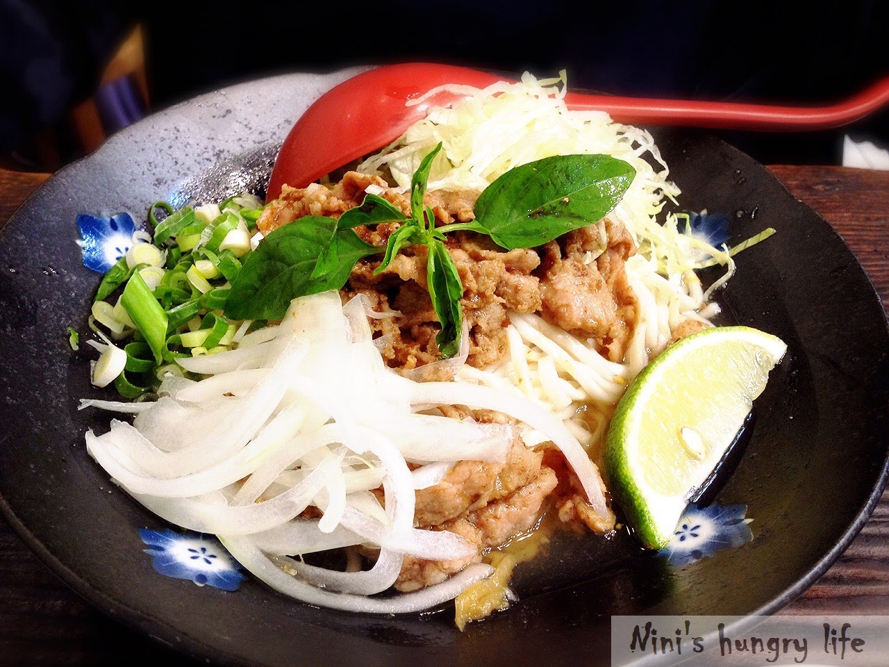 有點南洋風味,裹粉的豬肉滑嫩,拌麵的醬汁清爽,擠上一顆檸檬,微酸的口感加上九層塔的香氣,十分的開胃。還有冰鎮過的洋蔥絲,辛中帶甜,是非常適合夏天的乾拌麵!!!