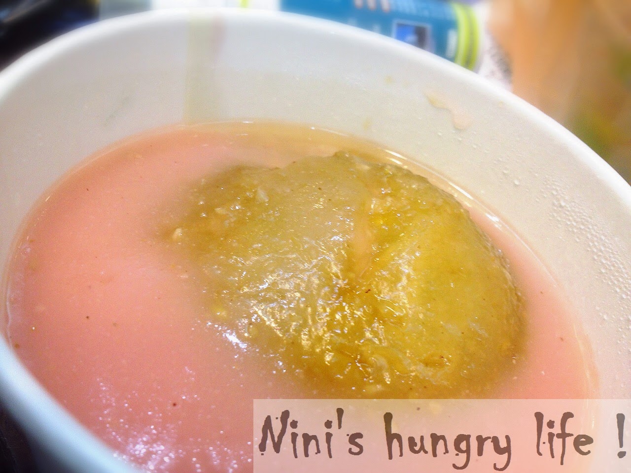 這家的肉圓有兩種醬,分別是有點粉紅的甜辣醬(或是甜麵醬),加上有點蒜味的蒜味醬(我怎麼好像在廢話繞口令)。然後其實呢,看這個賣相是非常的平庸(歐對了店裡的香菜是自助的,,就拍照美觀而言,似乎要撒點香菜比較養眼)。現場還有魚丸湯(但早就賣完)或是當場吃(就是在那邊內用)可以無限加清湯。說真的我的ip4s已經快要罩不住了,拍照功力越來越差啊,這次把安東街無敵彰化肉圓王拍成女生的捏捏了,還好配色和範圍剛好顛倒過來,不然真可謂色香味俱全啊!!!