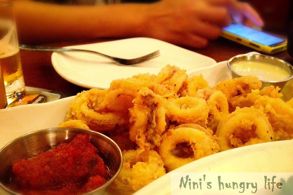 其實以我最愛高熱量食品的個性來說,應該是要點蒜味薯條的啊,但這天估計是很久沒有吃花枝圈圈,又害怕GB的分量很多,所以典個花枝圈圈來當開胃菜。菜單上寫說是香辣瑪莉娜拉醬,吃起來像是塔塔番茄綜合體,還算不錯。不過以花枝圈來講,我要推薦的是永康街的等很久鹹酥雞,他的花枝圈圈是每次我想到都會想立刻吃到的那種。